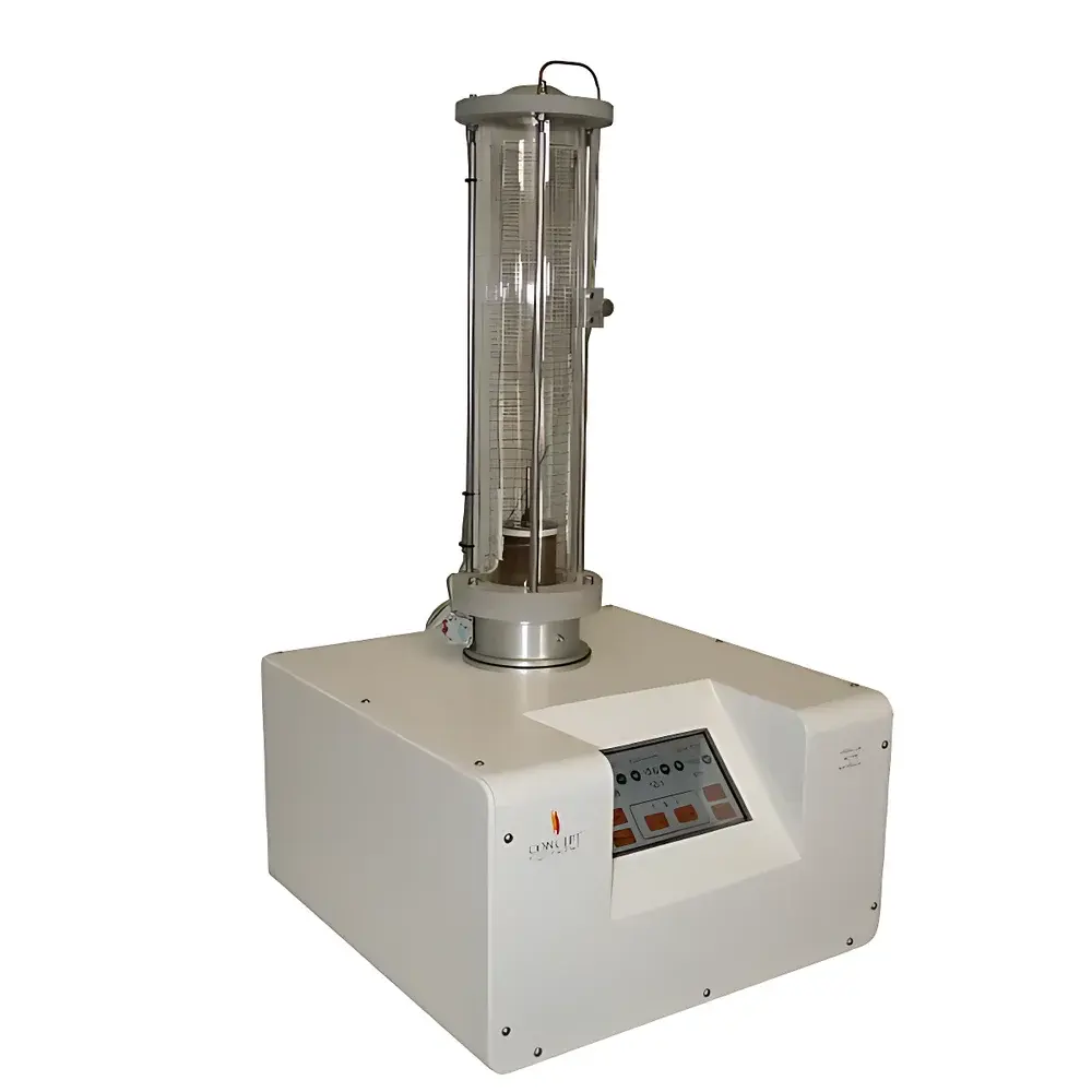 The Concept Temperature Index Module (TIM) is a precision-engineered high-temperature extension to the standard Oxygen Index Module (OIM), designed specifically to determine the limiting oxygen index (LOI) of polymeric and composite materials under elevated thermal conditions—up to 400 °C. Unlike conventional LOI testers operating exclusively at ambient temperature, the TIM implements a dual-heater column architecture that enables controlled, uniform heating of both the test specimen and the surrounding gas stream, in strict compliance with ISO 4589-3 and NES 715. The module operates on the fundamental principle that oxygen concentration required to sustain candle-like combustion decreases as ambient temperature rises; therefore, high-temperature LOI data provides critical insight into real-world fire performance under pre-ignition thermal stress—particularly relevant for aerospace composites, rail interior materials, and electric vehicle battery enclosures.