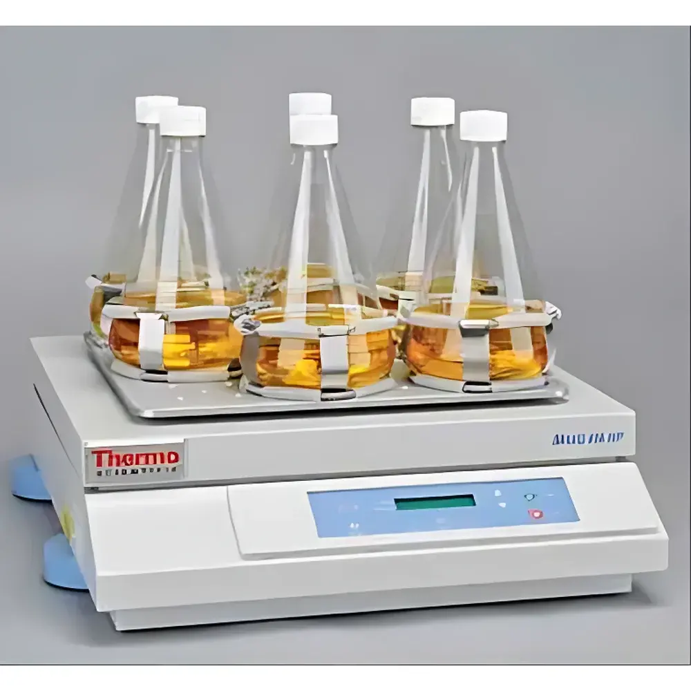 The Thermo Scientific Cimarec Biosystem Magnetic Stirrer is an engineered solution for precise, low-heat agitation of cell cultures and other thermosensitive biological samples within controlled-environment incubators—particularly CO₂ incubators. Unlike conventional magnetic stirrers, the Biosystem integrates a fully sealed, seamless stainless-steel chassis with no external control interface on the unit itself, eliminating potential microbial ingress pathways and enabling safe placement directly inside humidified, sterile incubation chambers. Its operation relies on contactless magnetic coupling between an external rotating magnet drive (housed in the Biomodul 40B controller) and internal PTFE-coated stir bars, ensuring zero mechanical wear, minimal heat generation (<0.5 °C temperature rise at 120 rpm under standard load), and stable rotational torque across the full speed range. Designed specifically for life science laboratories adhering to GLP and GMP-aligned workflows, the Biosystem meets stringent requirements for environmental integrity, process reproducibility, and equipment traceability in cell culture, fermentation, and bioprocess development applications.