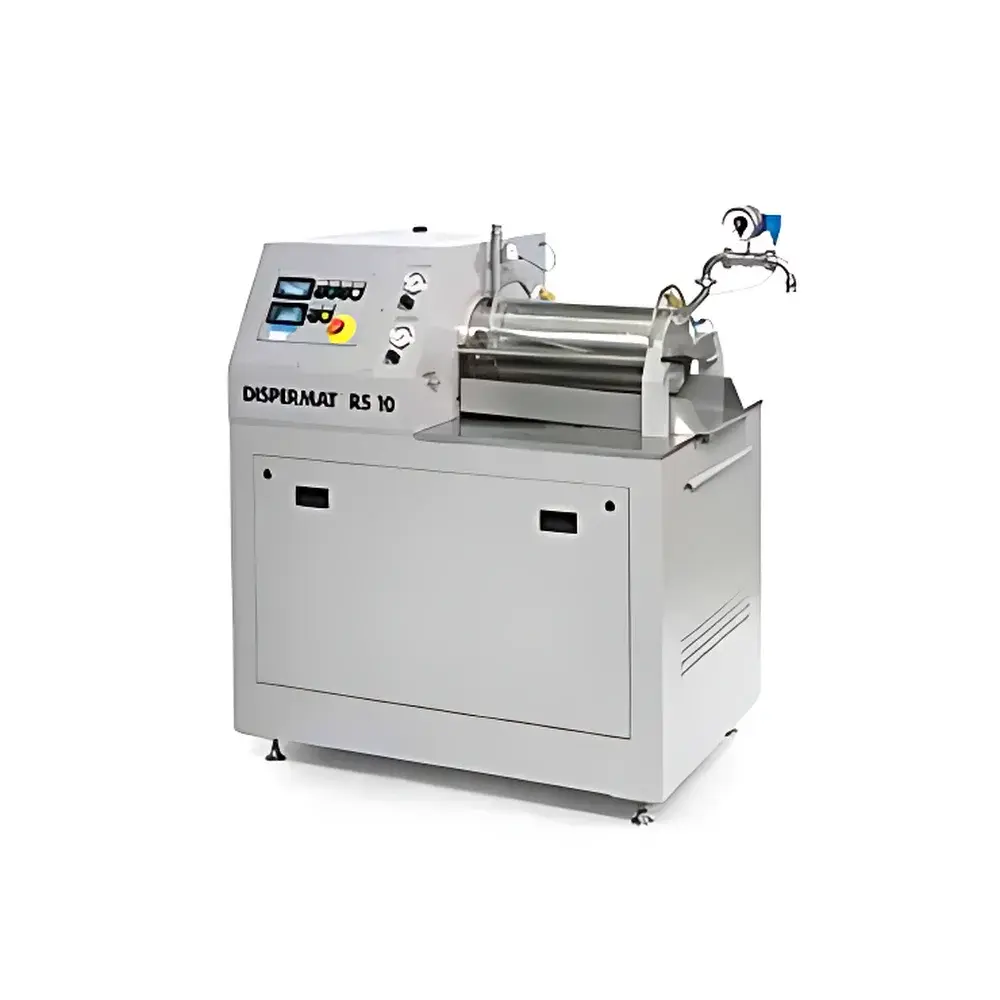 The VMA DISPERMAT RS is a high-performance horizontal bead mill engineered for laboratory-scale and pilot-plant dispersion, deagglomeration, and wet grinding of temperature-sensitive and shear-sensitive materials. Operating on the principle of attrition and impact between grinding media (typically zirconia or stainless steel beads, 0.1–2.0 mm diameter) and suspended particles in a liquid medium, the DISPERMAT RS utilizes a horizontally oriented, jacketed grinding chamber driven by a robust dual-bearing shaft. Its design adheres to fundamental principles of colloidal processing—maximizing energy transfer efficiency while minimizing thermal load via active cooling of both the grinding shaft and chamber walls. This architecture enables reproducible sub-micron particle size reduction (D90 down to 0.01 mm) under tightly controlled hydrodynamic conditions, making it suitable for R&D workflows requiring strict process traceability and scalability to production-grade mills.